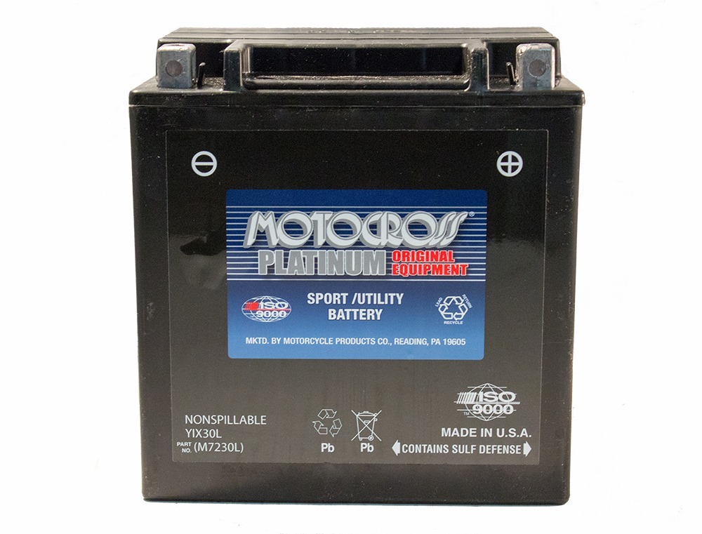 MOSM7230L YIX30L Motocross Battery Proudly Made In The U.S.A, is manufactured by Yuasa, using the same assembly process and materials.Yuasa's High Performance Battery can operate on uneven surfaces and vibrating environments.