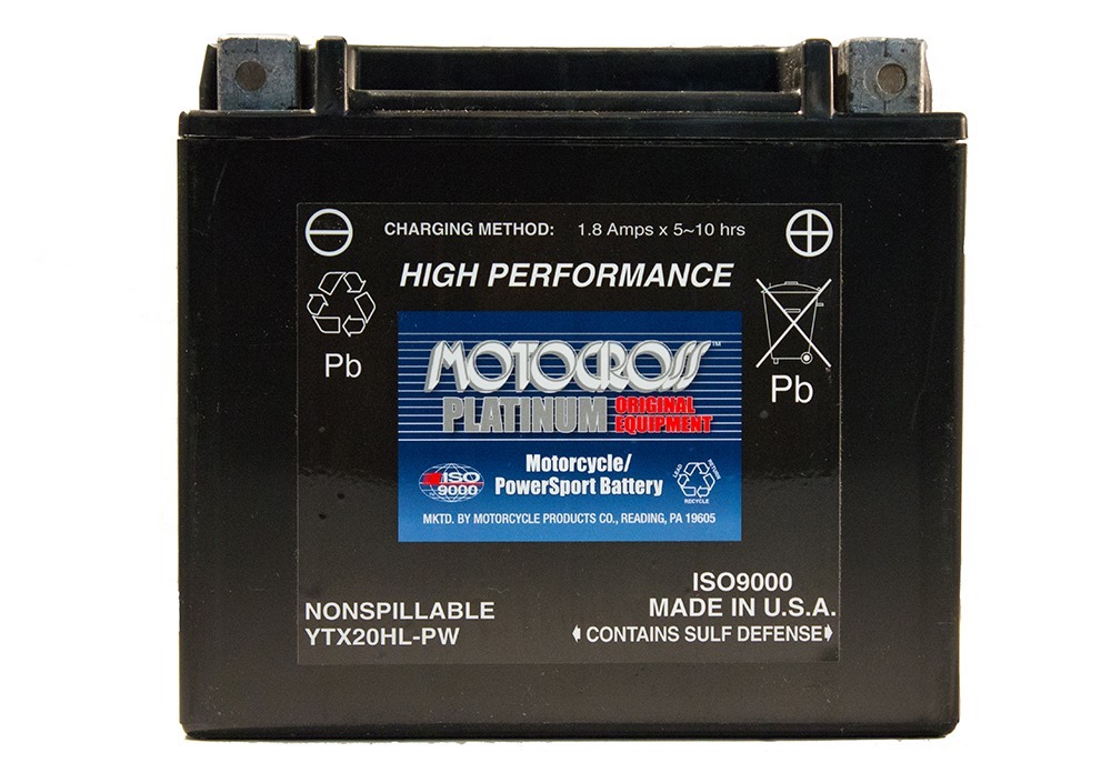 MOSM720BH-PW YTX20HL-PW Motocross Battery Proudly Made In The U.S.A, is manufactured by Yuasa, using the same assembly process and materials.Yuasa's High Performance Battery can operate on uneven surfaces and vibrating environments.