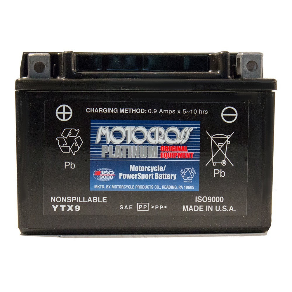 M729BS YTX9 Motocross Battery Proudly Made In The U.S.A, is manufactured by Yuasa , using the same assembly process and materials.Yuasa's High Performance Battery can operate on uneven surfaces and vibrating environments.