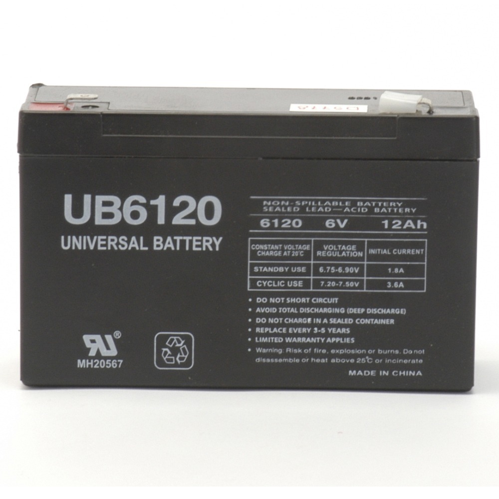 D5778 UB6120 6V 12AH - Absorbant Glass Mat (AGM) technology for superior performance. Valve regulated, spill proof construction allows safe operation in any position.